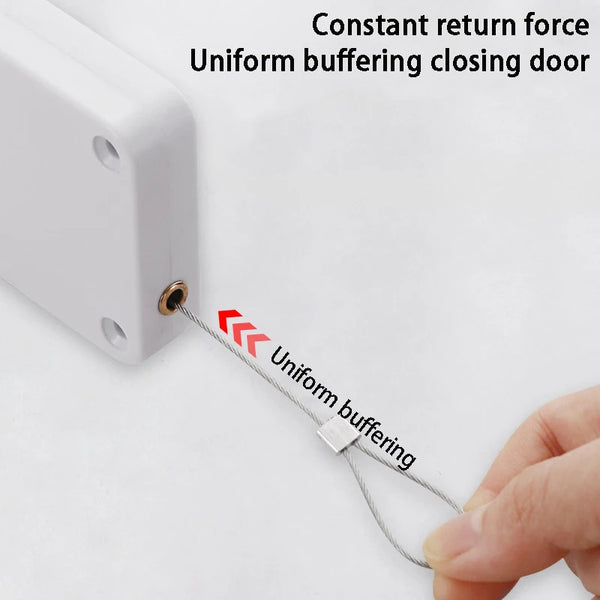 The closer uses a pull cord mechanism to quietly and automatically close doors, reducing noise and improving security.